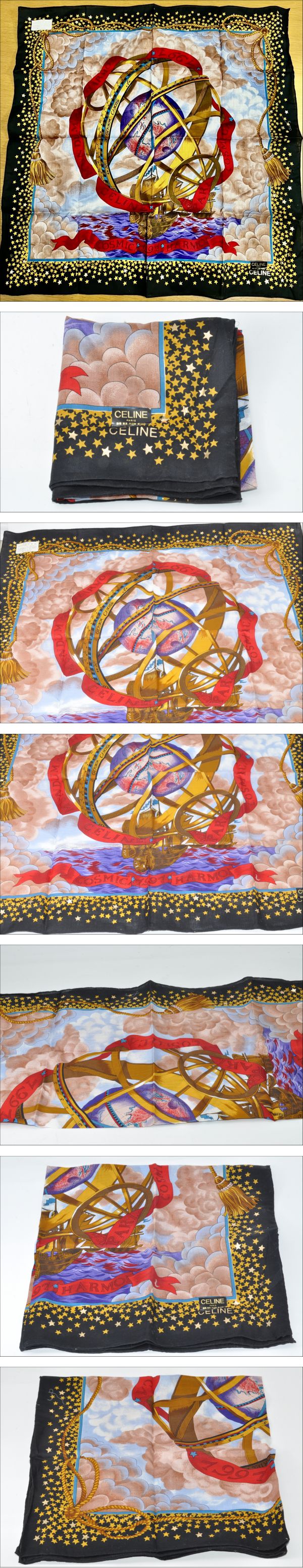 CELINE セリーヌ ヴィンテージ ハンカチ 天体 宇宙 地球儀 船 COSMIC 1991 綿100% 【No.120】 の出品です!