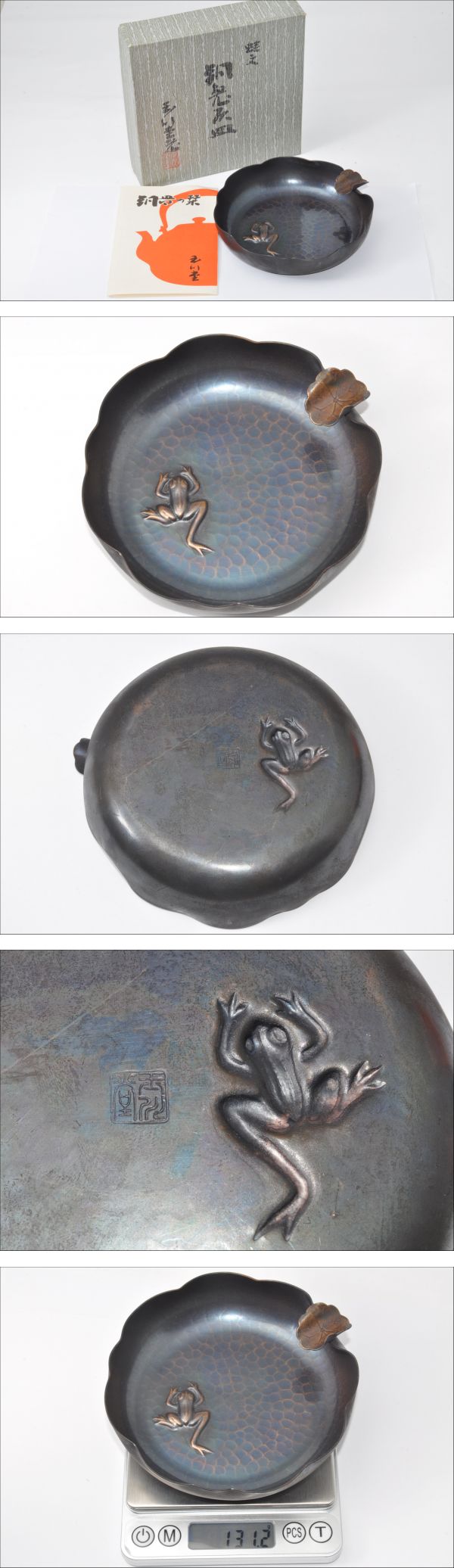 【無形文化財】 玉川堂 鎚起銅器 蛙文 銅製灰皿 共箱 栞付き 茶道具 金属工芸 人間国宝 縁起物 【No.127】
