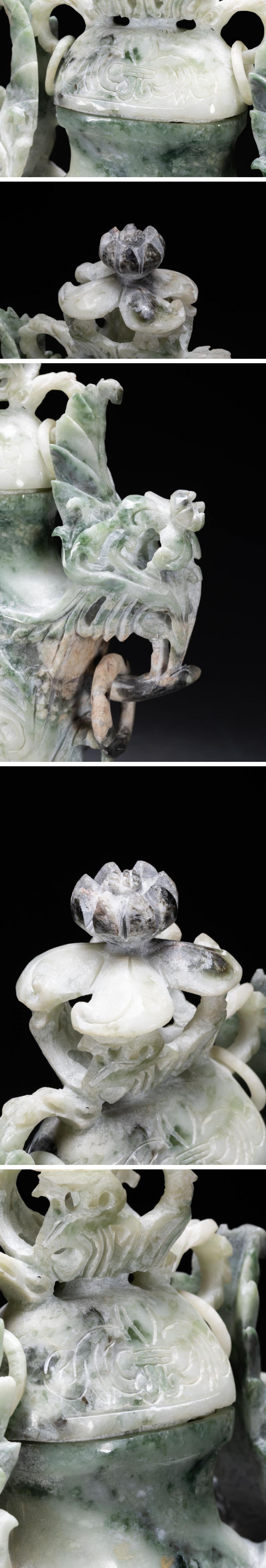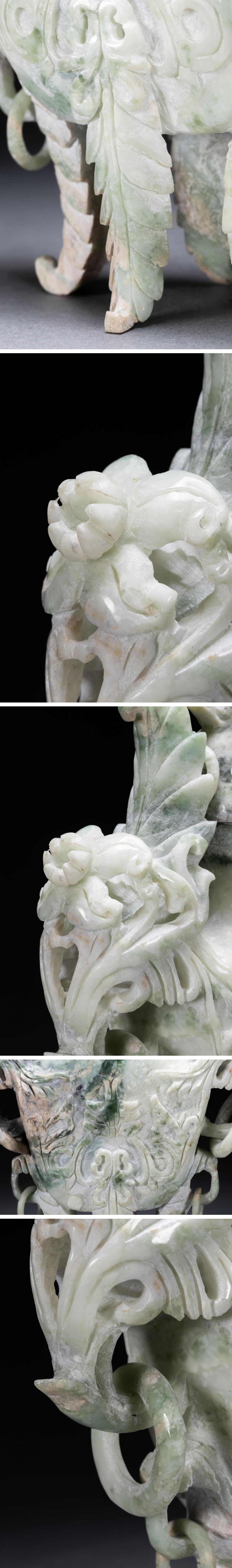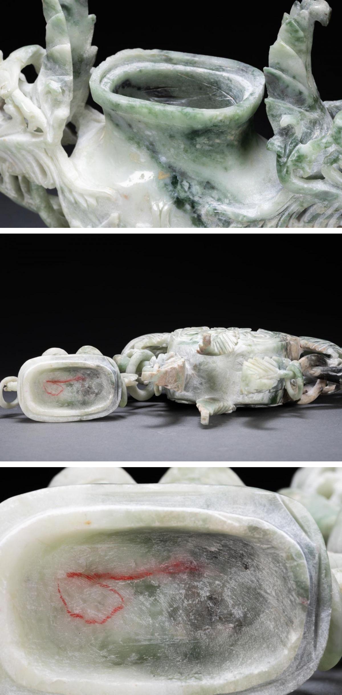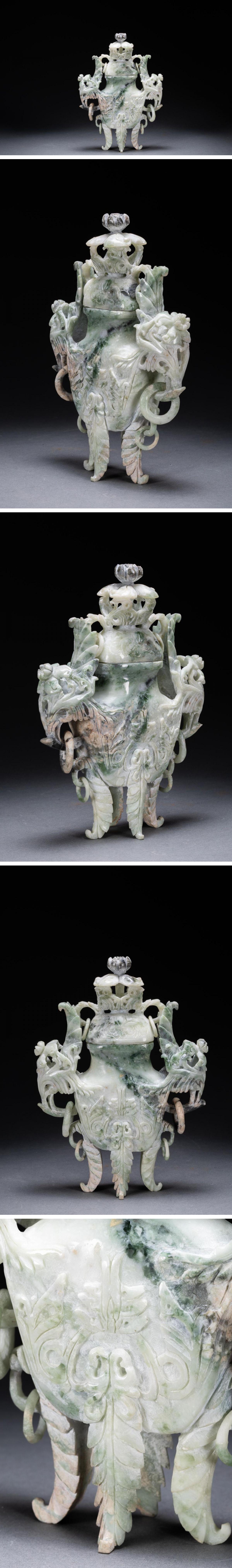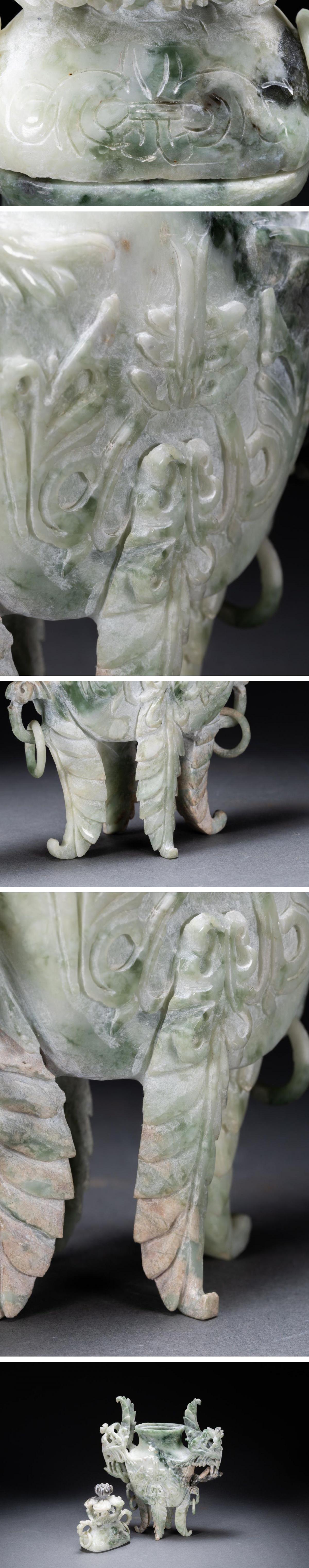 【雲錦】1円から 時代物 天然石 双鳳耳巨大香爐 透かし彫り 中国骨董品 材質保証 時代物保証 古美術 骨董品7L10-158S1