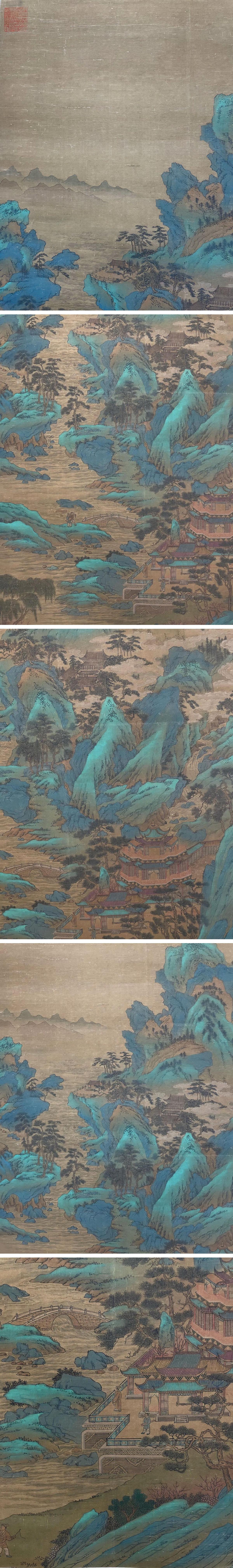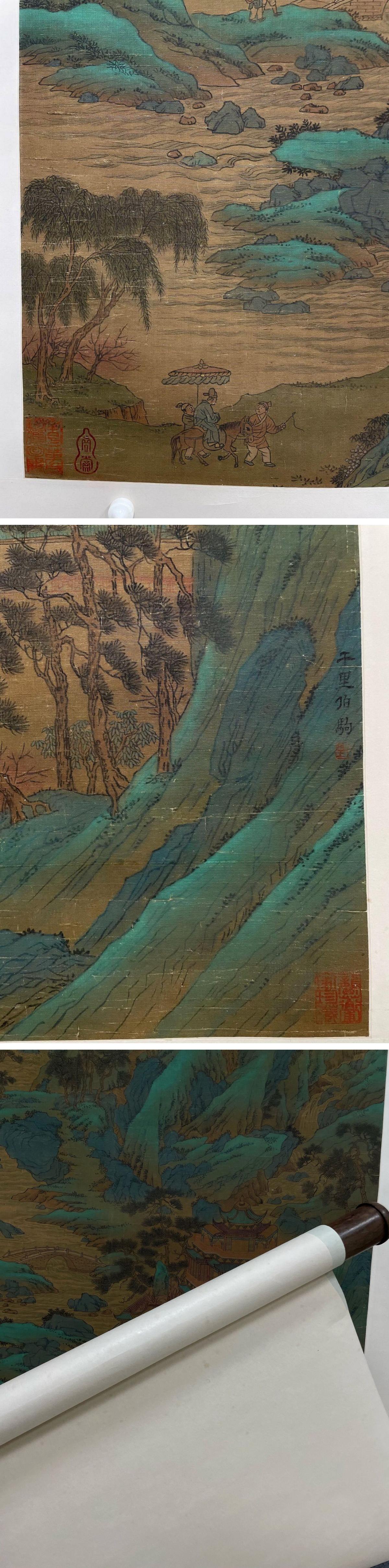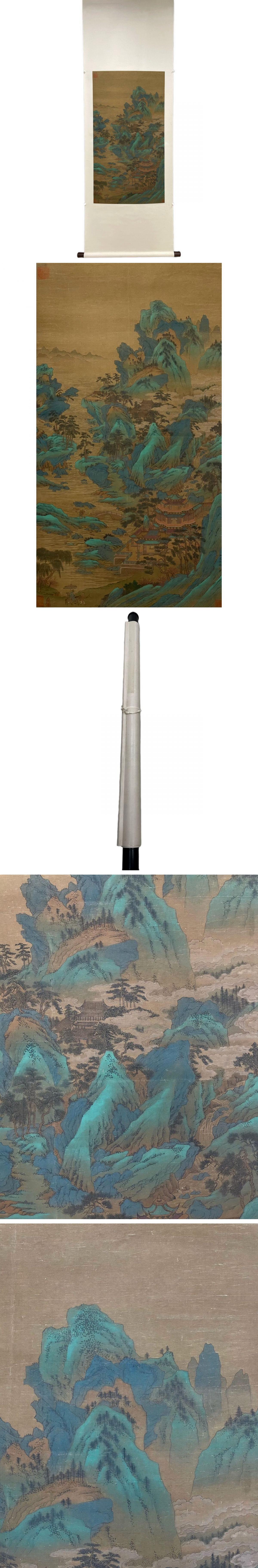【雲錦】某蒐集家買入「趙伯駒寫」中国宋時代画家 絹本【青緑山水図・掛け軸】肉筆保証 巻き物 中国字畫 中国書画 中国書畫8L10-18LL